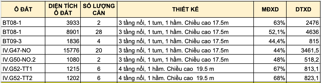 • Khu cao tầng gồm 2 ô đất CT19 và CT20. Theo nội dung điều chỉnh có thể CT19 và CT20 tương đương với khu đất cao tầng + TMDV và thấp tầng IV.G.51-NO 12.365m2 và ô đất IV.G.52-NO 14.035 m2.