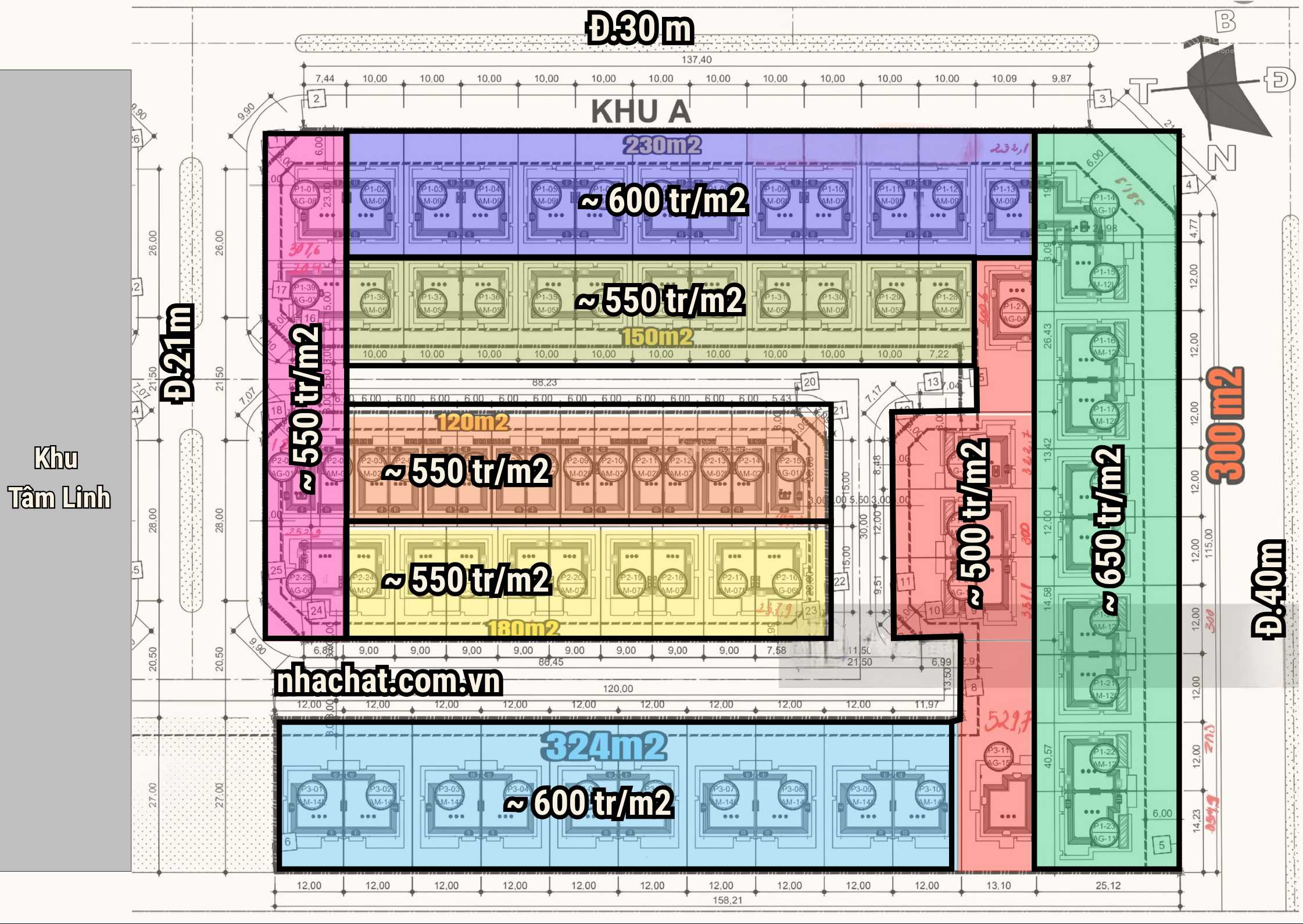 • Quỹ 4 căn BTSL góc 2 mặt đường có mặt hông đối diện khu tâm linh ( ngăn cách bởi đường đôi 21,5m và 2 lớp cây xanh) có mức giá dự kiến từ 550 triệu/m2, tổng giá từ 100 – 175 tỷ.